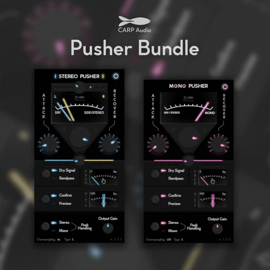 Both Mono Pusher and Stereo Pusher come equipped with an array of customizable controls. Fine-tune attack and recovery settings, shape peak detection using bandpass filters, and craft a unique sonic identity that evolves and captivates. Whether you're an artist, producer, or sound designer, the Pusher Bundle puts you in control of your audio's spatial journey.